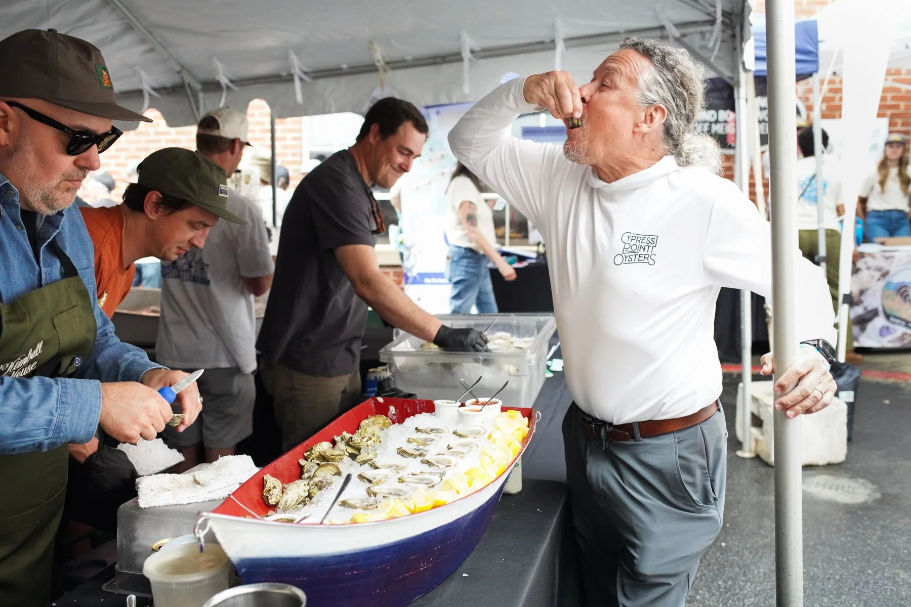 Zone 1: Raw Oyster Tent, featuring oyster farmers from around the country showcasing and shucking their incredible shellfish at our festival.